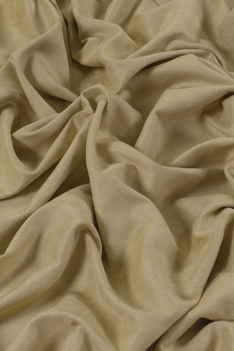 Italiană, țesătură elastică alcantara în culoarea bej deschis. Alcantara este o țesătură sintetică realizată din microfibră (microfibre, de până la 20 de ori mai fine decât un fir de păr uman), arată și se simte ca pielea de căprioară. Țesătură moale, subțire, elastică - perfectă pentru coaserea unei rochii, fustă sau pantaloni înguste.