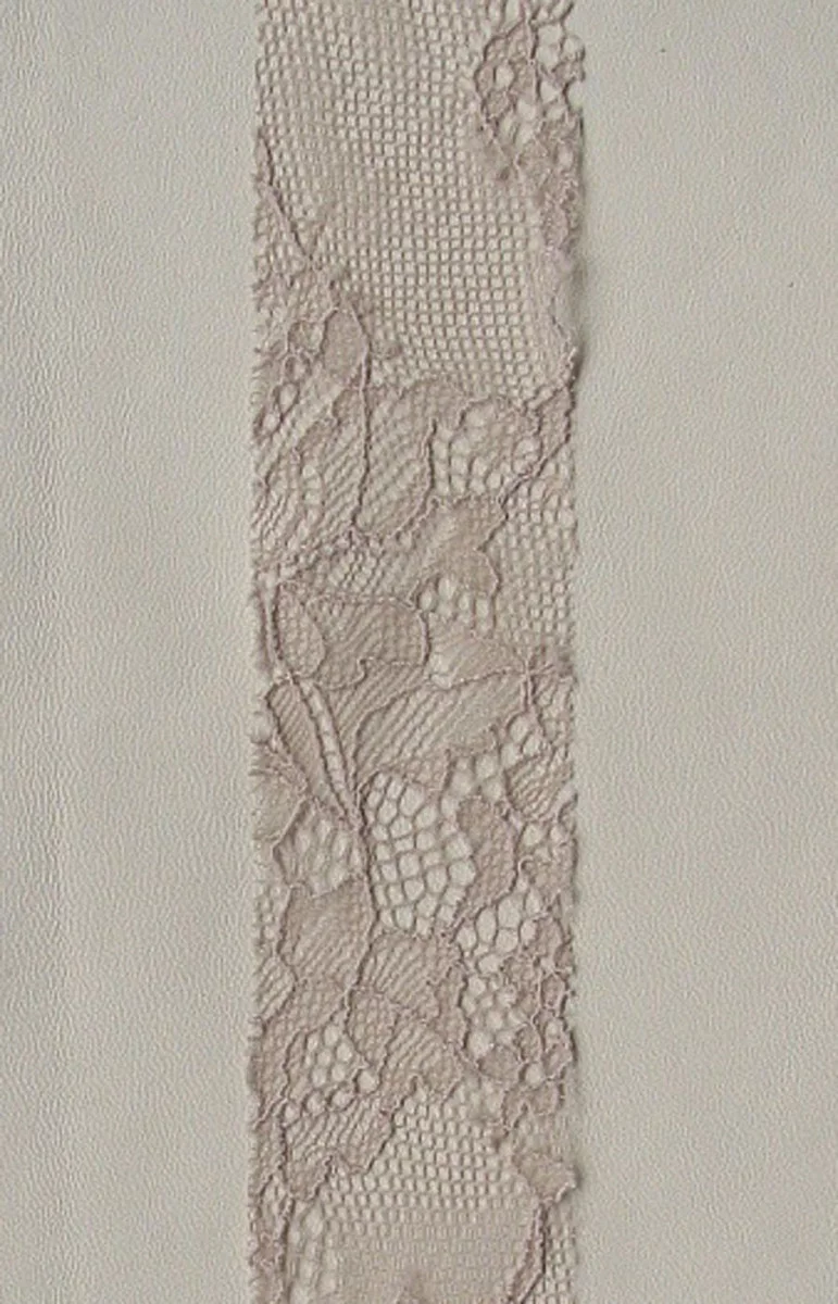 Bandă de mercerie din dantelă în bej deschis.