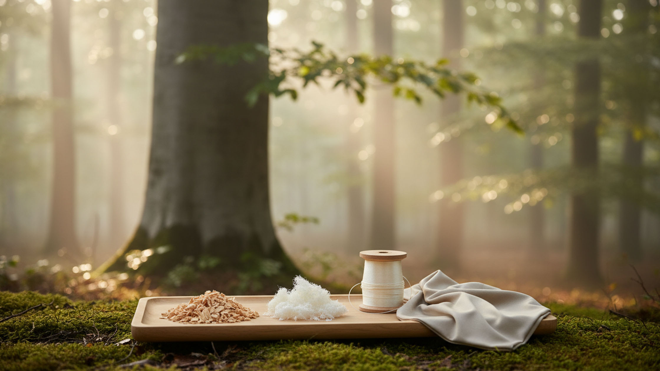 Compatibilitatea cu mediul a unui material depinde în mare măsură de sursa materiei prime. Furnizorii de încredere de celuloză de folosesc doar lemn certificat FSC (Forest Stewardship Council) sau PEFC. Acest lucru asigură că lemnul nu provine din păduri străvechi aflate în pericol de dispariție, ci din culturi forestiere certificate unde se realizează o gestionare durabilă. Fagii au o capacitate extraordinară de a se regenera și de a se reproduce prin așa-numitele reînnoiri naturale, ceea ce înseamnă că nu trebuie plantați artificial după fiecare tăiere. Aceste păduri cresc în principal în Europa Centrală, ceea ce înseamnă un lanț de aprovizionare mult mai scurt pentru consumatorul european comparativ cu bumbacul transportat din Asia sau America de Sud.