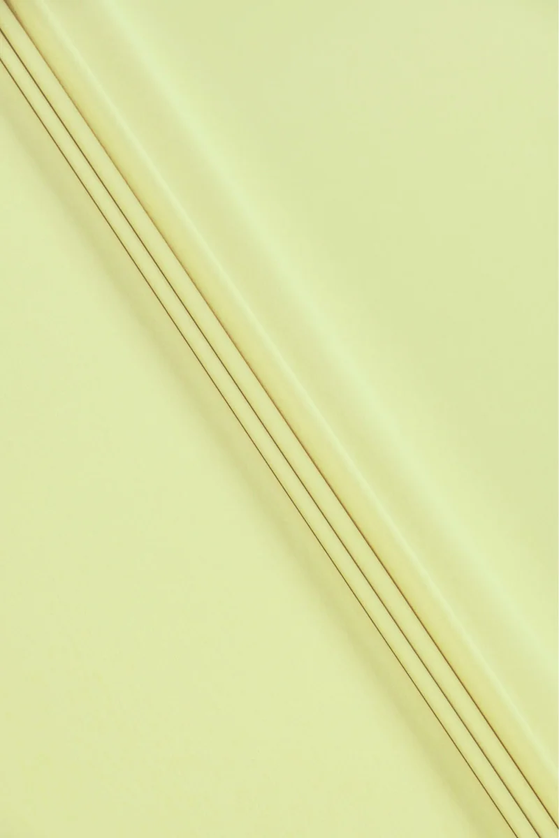 Țesătură italiană din bumbac cu adaos de elastan de culoare lime deschisă. O țesătură elastică cu grosimea medie și o țesătură mată destinată coaserii unei rochii, fuste sau pantaloni. Țesătură naturală de foarte bună calitate, adăugarea de elastan o face mai confortabilă de utilizat și se încrețește mai puțin. O țesătură de neînlocuit primăvara și vara.