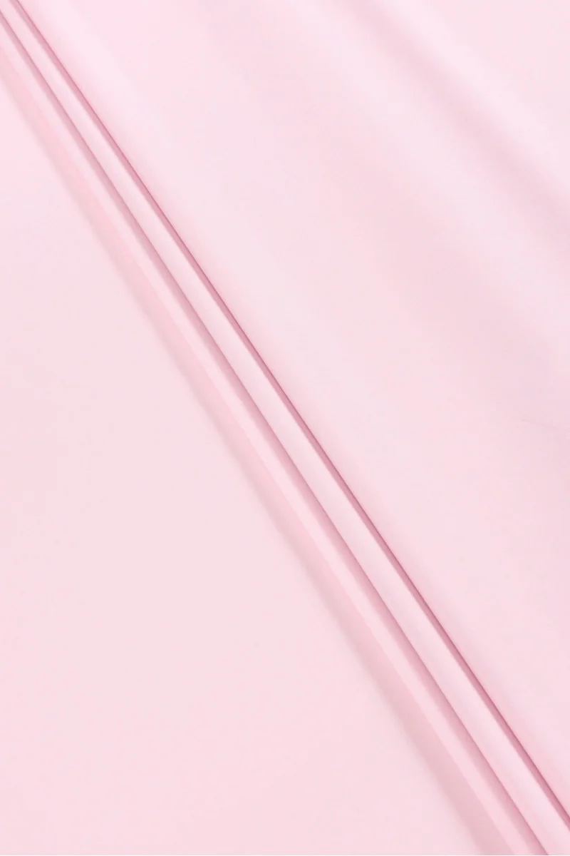 Cămașă italiană din bumbac, elastic în roz deschis. O țesătură subțire, dar opacă, cu o țesătură mată, destinată coaserii unei cămăși, bluze sau rochie. Țesătură naturală de foarte bună calitate, adăugarea de elastan o face mai confortabilă de utilizat și se încrețește mai puțin. O țesătură de neînlocuit primăvara și vara.