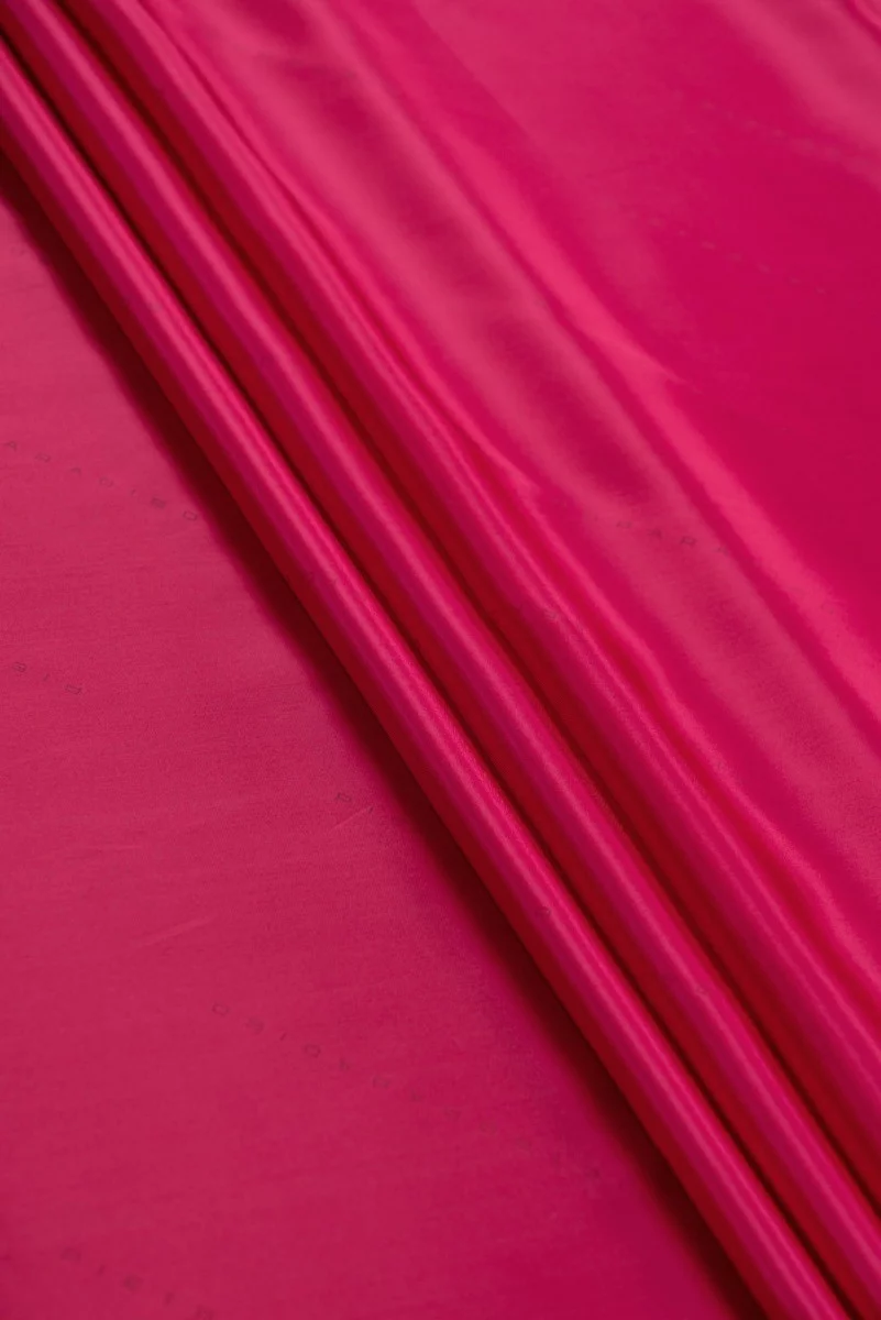 Căptușeală de viscoză italiană în roz închis, ascuțit. Semnat cu numele unui brand de modă cunoscut. Material neelastic, ușor lucios. Cuponul este perfect pentru a căptuși o vestă sau o fustă.