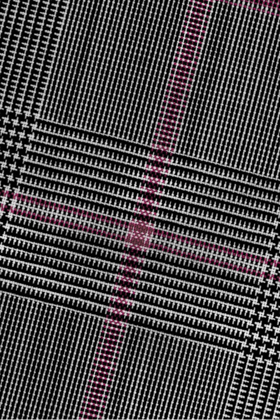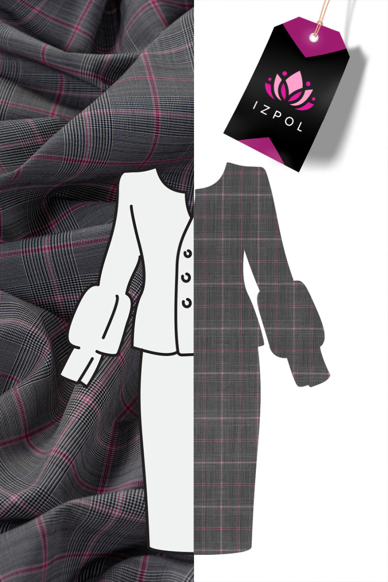Costum italian din lână gri și negru cu un motiv roz în carouri (3,5 cm). Țesătură moale cu o grosime clasică - perfectă pentru coaserea unui costum, costum, rochie, fustă sau pantaloni.