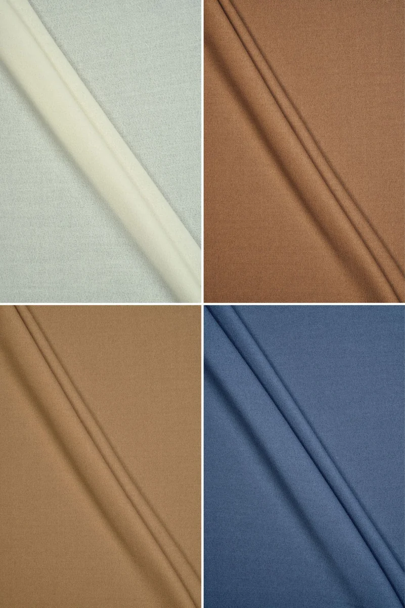 Țesătură italiană de lână realizată dintr-o țesătură de georgette în patru culori. Materialul este moale pentru straturi, destul de ușor, mat, inelastic și are o țesătură lejeră. Culoarea crem este ușor transparentă. Recomandăm folosirea unei căptușeli. Este perfect pentru rochii, fuste, jachete și pantaloni mai largi.