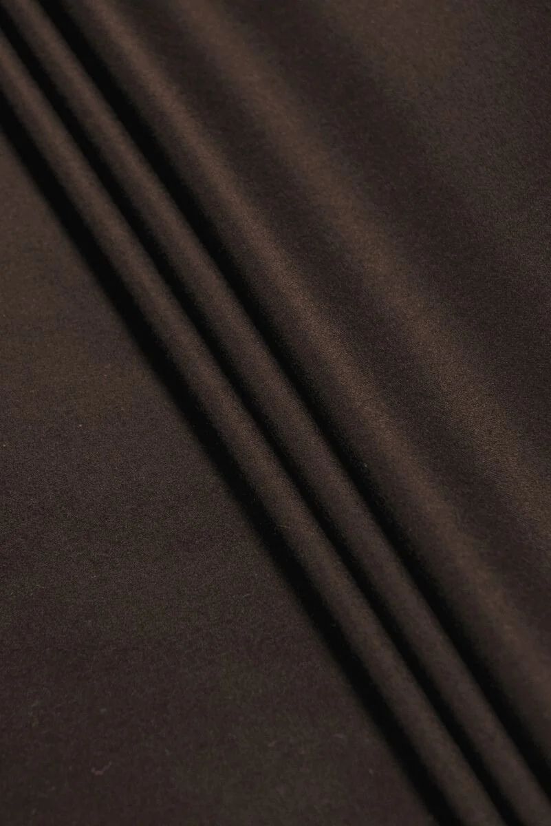 Material de costum italian realizat din lână naturală cu elastan maro închis. Materialul are o grosime medie, provenită din tipul de flanelă, frumos lucios. Este perfectă pentru cusutul hainelor de toamnă și iarnă, cum ar fi rochii, fuste sau pantaloni. O propunere fantastică pentru cei care apreciază tipuri bune de țesături.