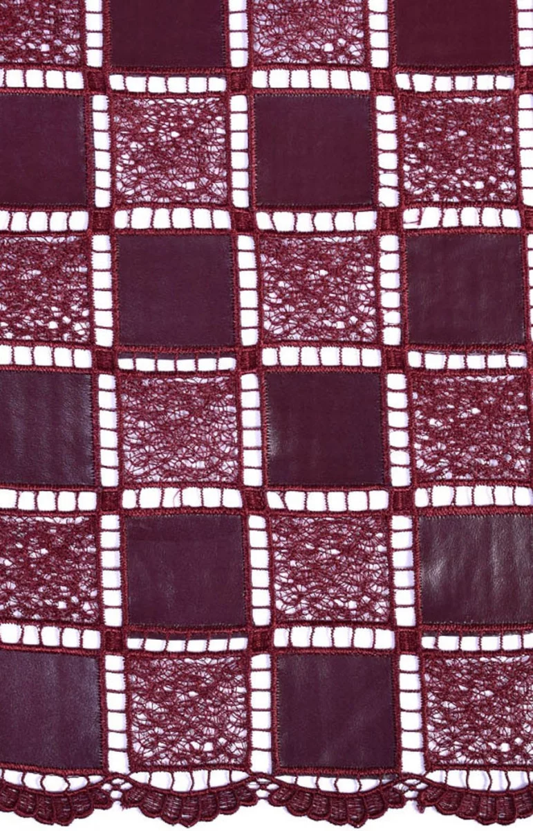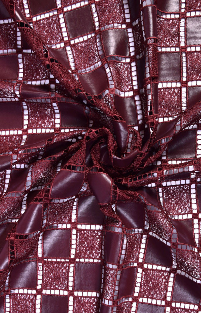 Piele ecologică de burgundă cu un model de șah. Finisat cu un dinte pe ambele părți.