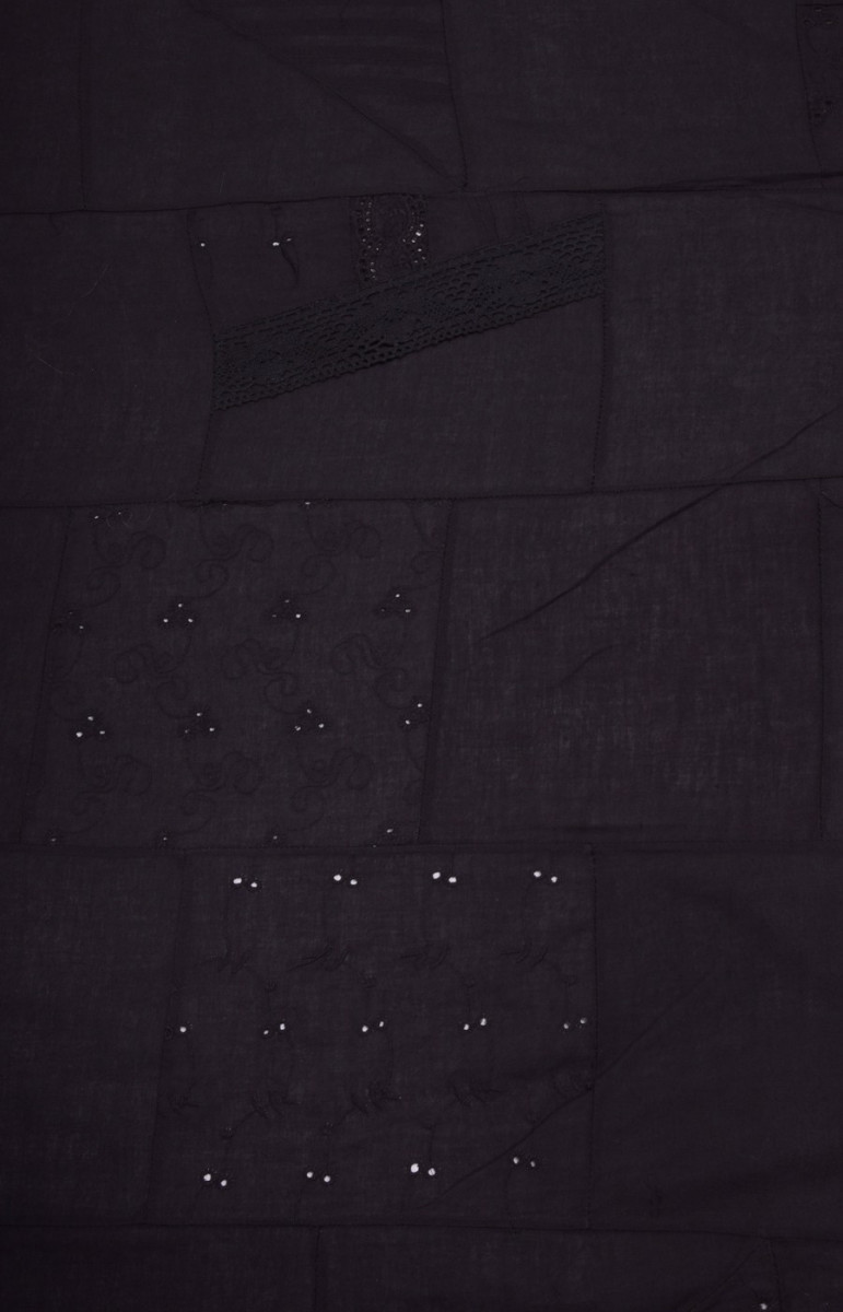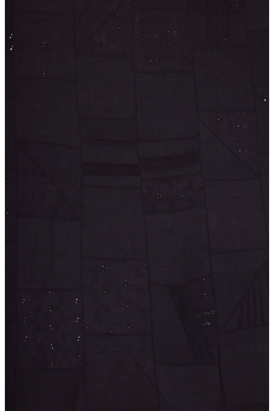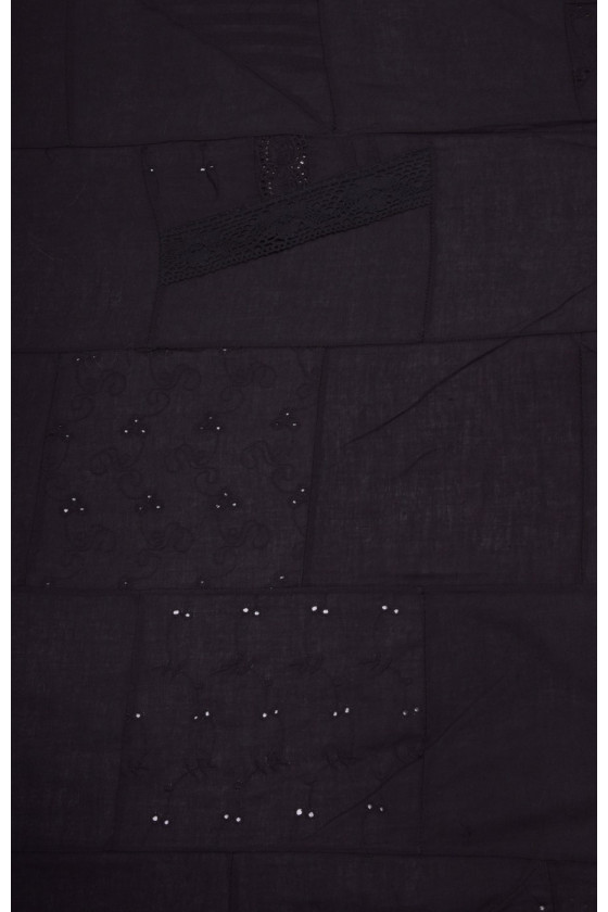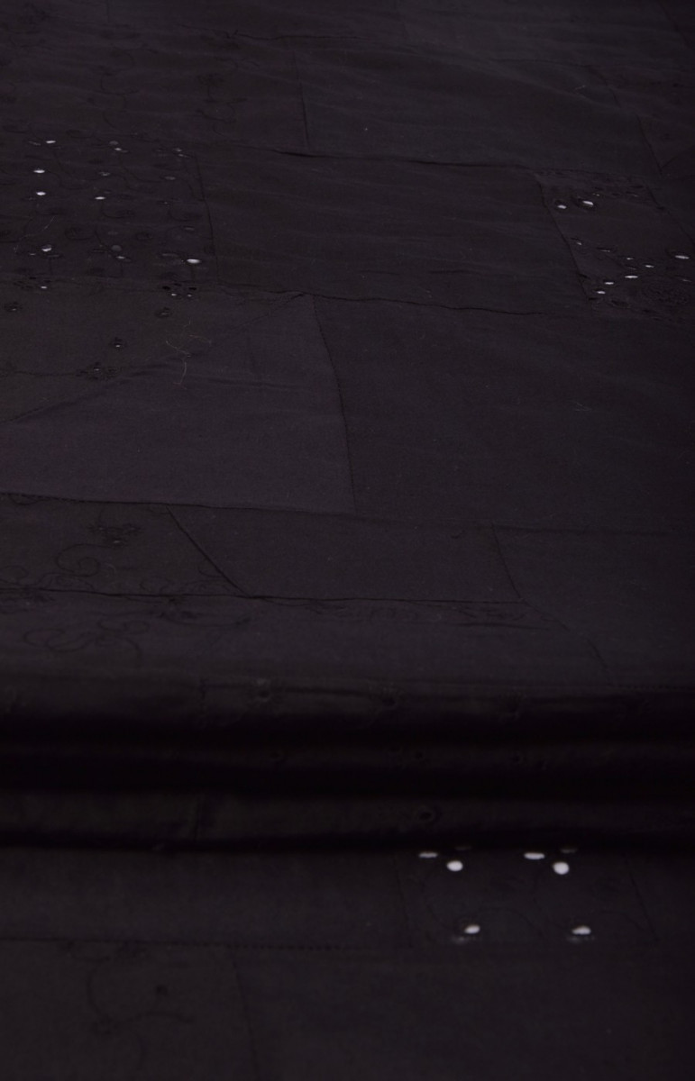 Țesătură italiană 100% bumbac cu broderie Richelieu în negru cu un motiv patchwork. Țesătură subțire, ușor transparentă, neelastică - perfectă pentru coaserea unei rochii de vară, bluză sau fustă.