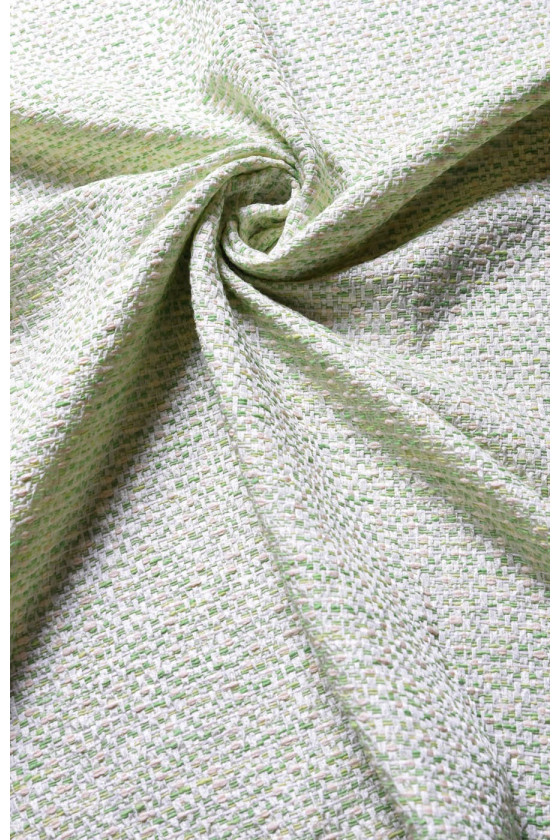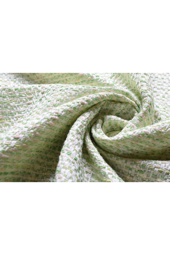 Țesătură de costum Chanel în verde pastel și ecru, grosime medie. Perfect pentru jachete, rochii, paltoane de tranziție.