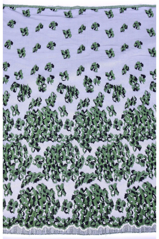 Dantelă franțuzească frumoasă în două culori (verde și bleumarin) cu model în creștere, finisată cu un dinte pe o parte. Perfect pentru bluze și rochii. Vă recomandăm să-l cumpărați perimetru.