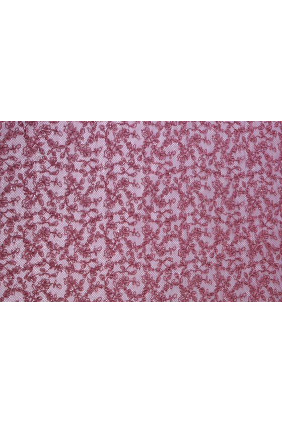 Dantelă subțire, delicată pentru rochii și bluze. Design frumos. Pe manechin este fixată circumferențial pe satin de mătase naturală.