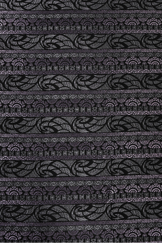 Țesătură de costum jacquard italian cu motive orientale care formează dungi orizontale de 12 cm lățime. O combinație frumoasă de negru, gri și violet murdar.