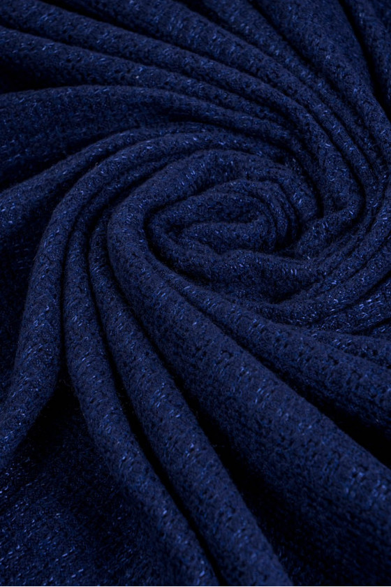 Pulover albastru închis tricotat țesătură cu o țesătură deschisă, foarte maleabilă. Țesătura este alcătuită din fire de lână și acril. Îl recomandăm pentru coaserea puloverelor, cardiganelor, eșarfelor.