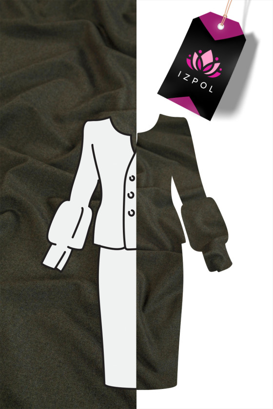 Costum italian lână în verde de măsline - melanj. Țesătură moale, carne, inelastică de tip toamnă-iarnă. Perfect pentru coaserea unui costum, costum, pantaloni, fustă, rochie.