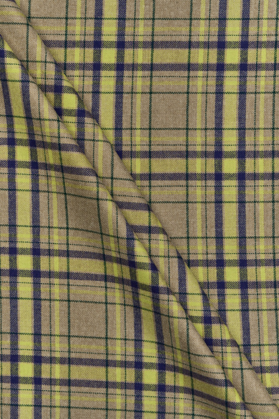 Țesătură de costum italiană din colecția toamnă-iarnă, țesută din lână și poliester cu motiv în carouri în bej cald, violet și lime. Model regulat de un carouri mai mare - dimensiunea unui motiv este de 12 cm * 11 cm. Țesătura este de grosime medie, moale, plăcută la atingere și elastică cu o țesătură netedă. O propunere atemporală care va fi perfectă pentru a coase o fustă, o rochie, precum și pantaloni și o jachetă.
