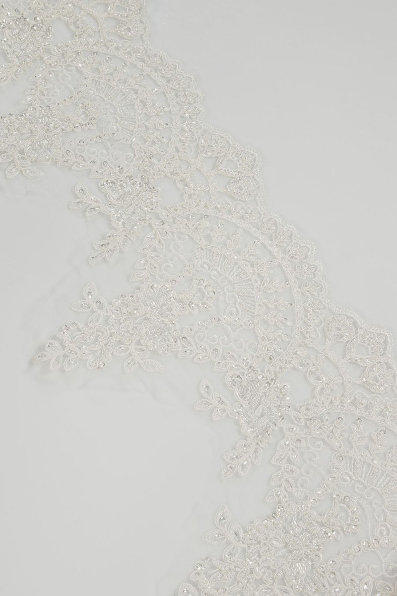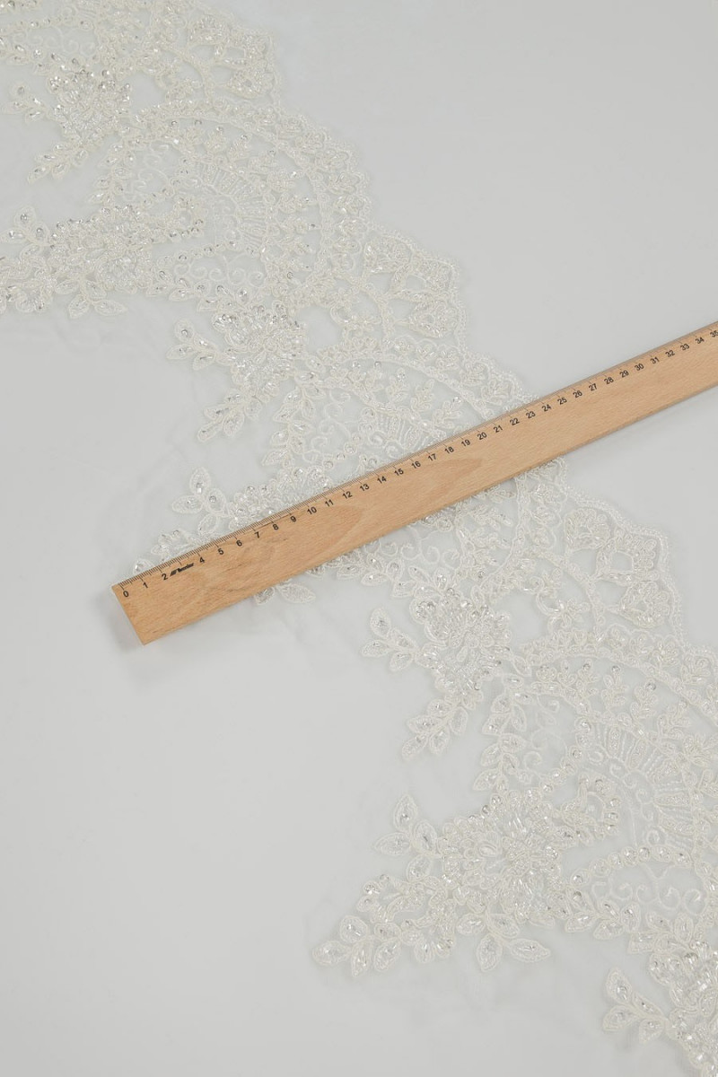 Bandă de dantelă cu mărgele ecru