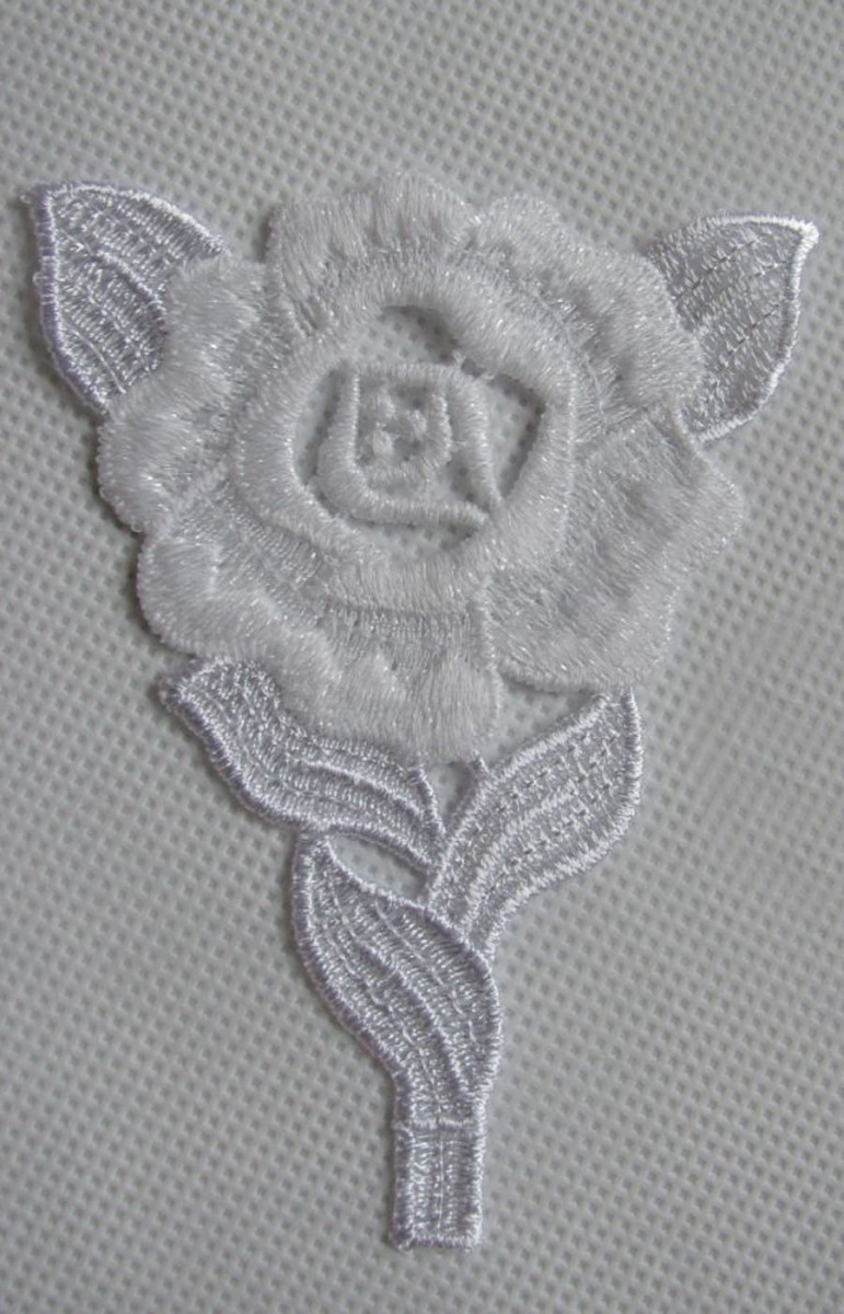 Aplicație de mercerie floare albă.