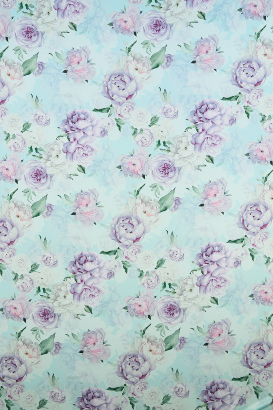 Satin italian din poliester cu un motiv de bujori mari pe un fundal turcoaz deschis. Modelul este realizat în culori delicate, pastelate. Țesătura este aerisită, ușoară, cu o țesătură netedă din satin, delicată și plăcută la atingere. O propunere romantică pentru persoanele cărora le plac modelele florale. Țesătura este perfectă pentru coaserea unei rochii aerisite, fustă, bluză și cămașă.