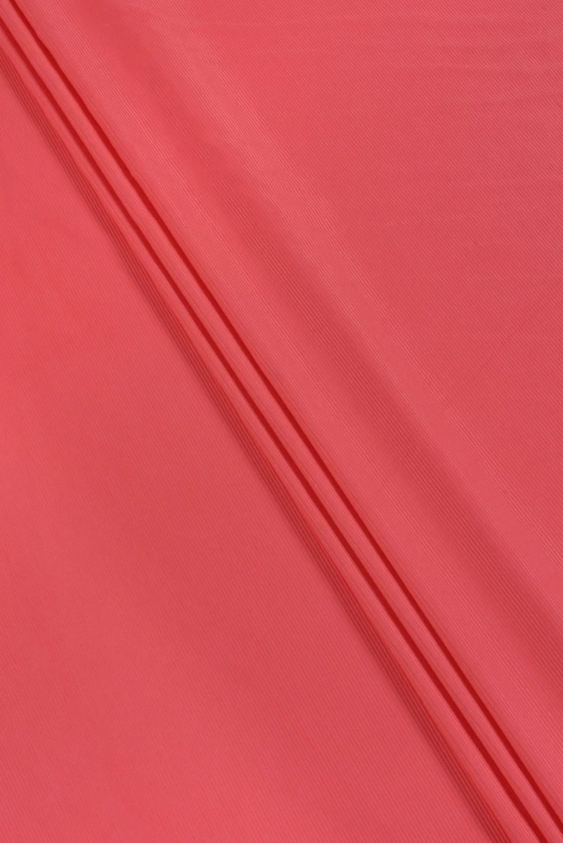 Fabric cu o caracteristică grosgrain în culoarea coralului. Țesătura este neelastică, ușor rigidă, cu o strălucire delicată, netedă la atingere.